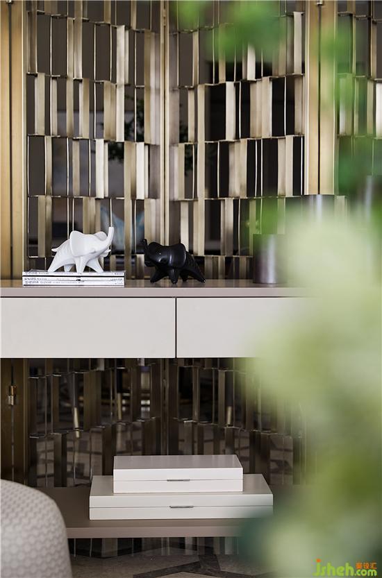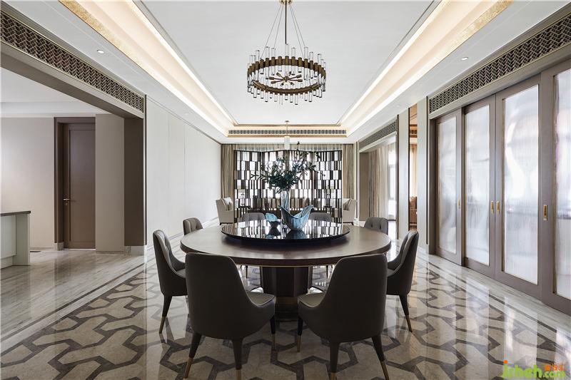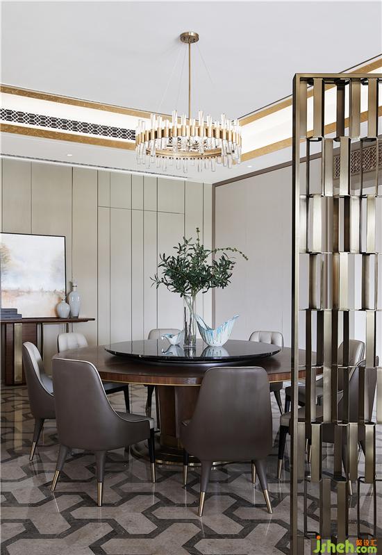 餐廳在米色的基礎(chǔ)上添加了更沉穩(wěn)端嚴(yán)的一筆,描摹家族的餐饗禮序。美是很抽象的東西,但生活的美好模樣卻可以具象。香氣誘人的料理端上桌,一家人聚在一起,水晶燈揮灑星光如水,于高朗的情境中悠然感受人間煙火氣。