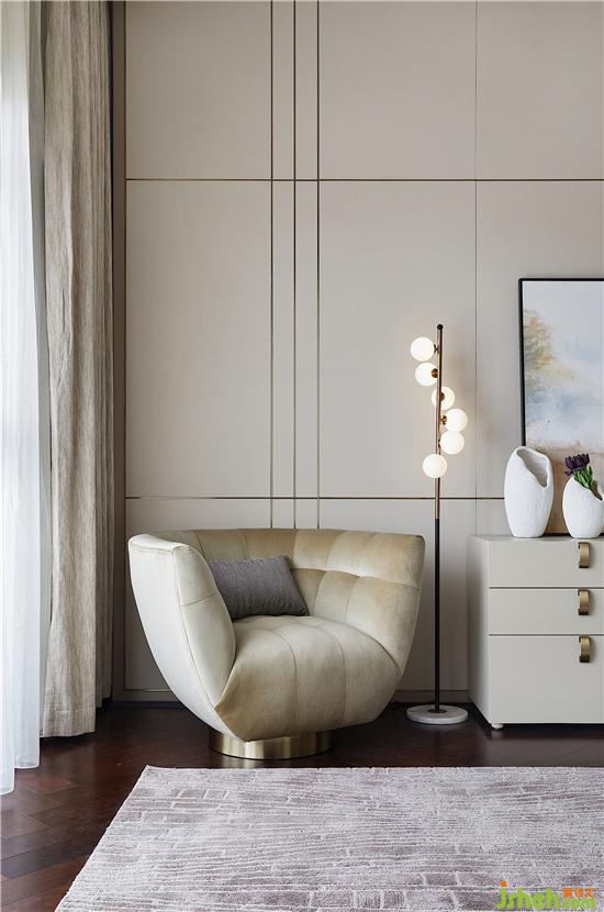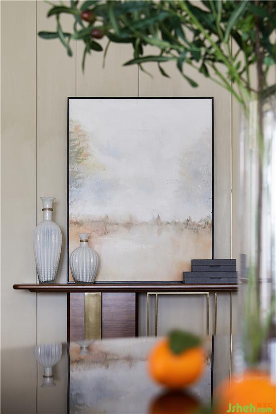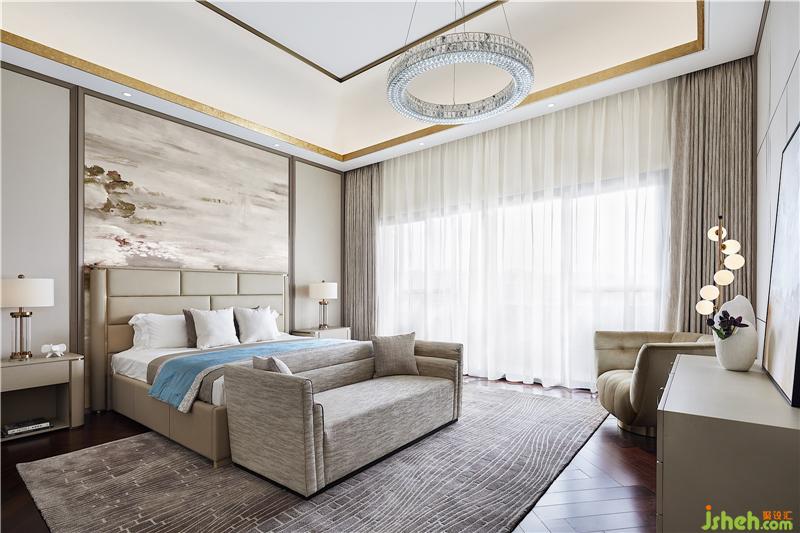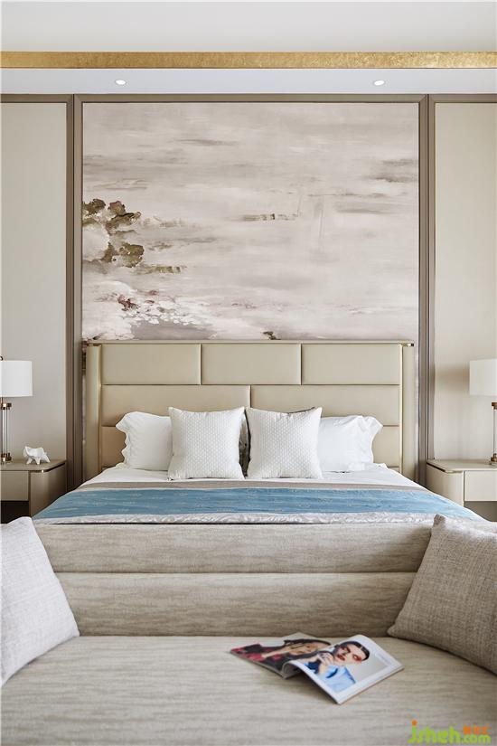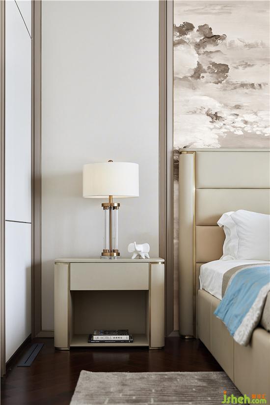 主臥用大幅的寫意掛畫打破背景墻的素雅,綠意清爽,紫韻朦朧,仿若莫奈的睡蓮,水光花影,斑駁閃耀,貼合居者的藝術(shù)格調(diào)。別墅裝修設(shè)計(jì)