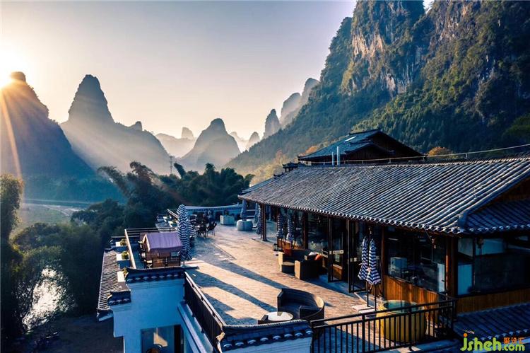 陽朔山水謠酒店位于桂林漓江河畔陽朔縣興坪段鐮刀灣,面臨漓江,背倚元寶山,地處漓江風景最精華之處。在酒店露臺上,您可以獨享發(fā)呆時光,還能將“漓江精華游”上推介的興坪段佳景盡收眼底:左眺“黃布倒影”“和尚斗嘴”,右覽“美女梳妝”、“鯉魚上灘”;清晨觀“老寨山日出”,傍晚賞“漁舟唱晚”,夜半遙望“星空璀璨”。