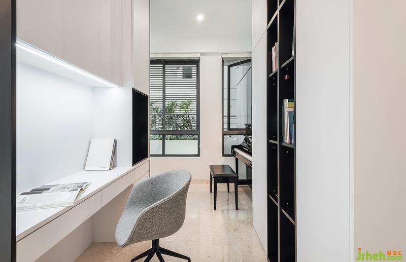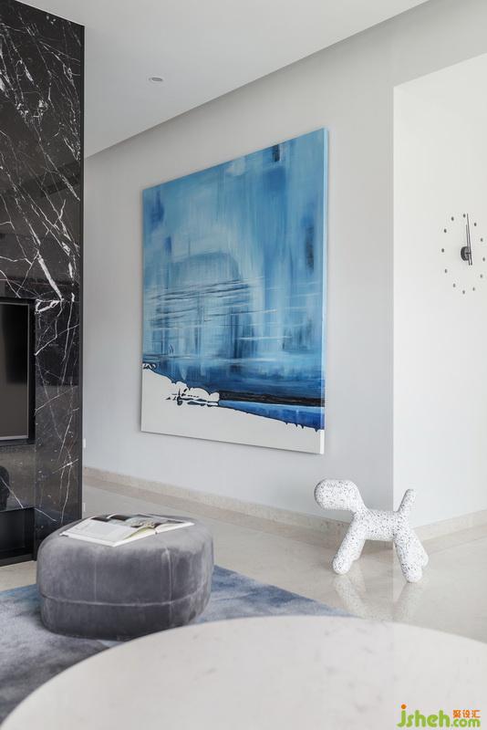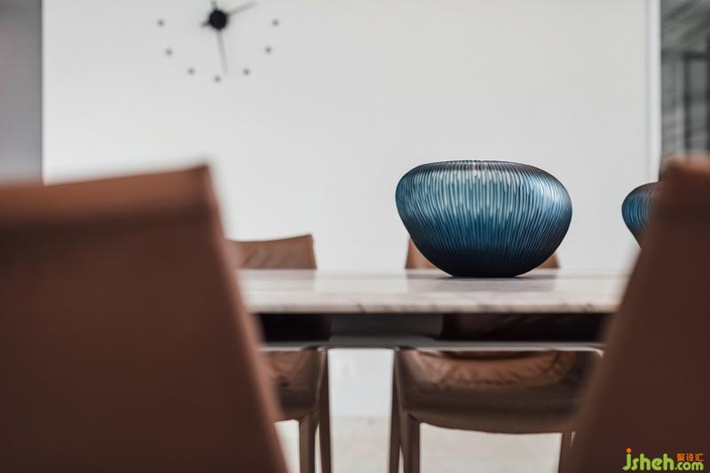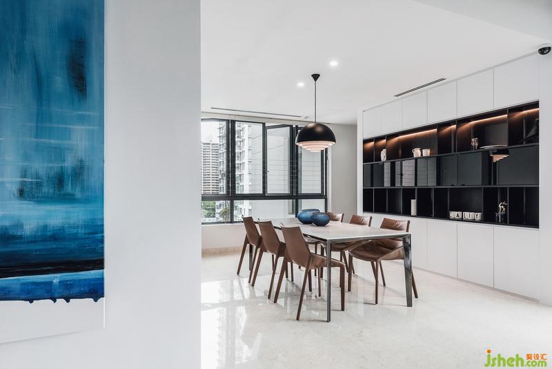 空間整體的中性淺色調(diào),亦營造出最干凈溫和的視覺觀感,同時輔之較大面積的靛藍(lán)色塊與之搭配,設(shè)計公司用冷調(diào)降低新加坡四季炎夏的灼熱感