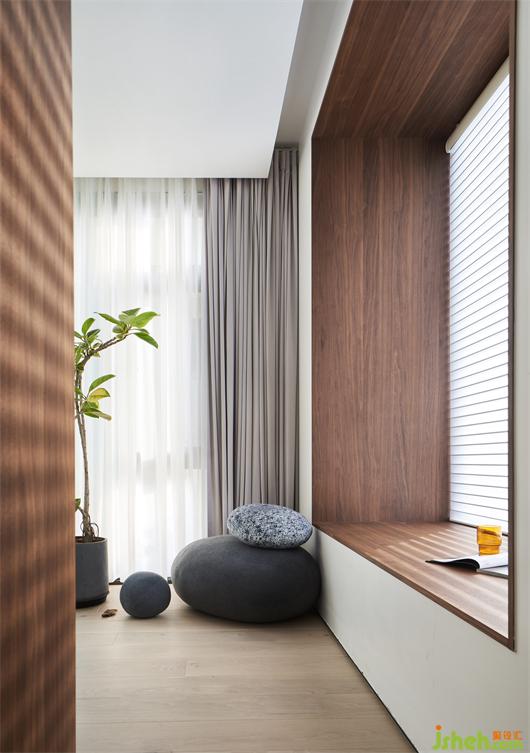 空間同時(shí)絮白的肌底配上溫潤(rùn)的暖木