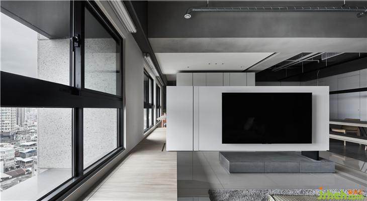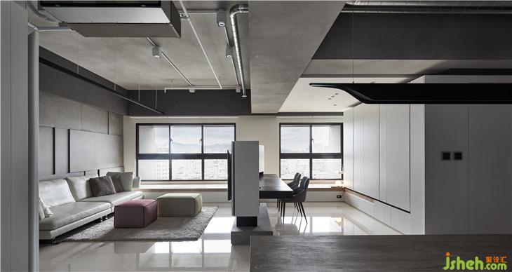 在設(shè)計手法上運用漂浮的概念讓空間平面更加流動,延伸的窗邊臥榻連系著客廳與書房以及端景房間,裸露的天花及管線保留一種未完成的質(zhì)感