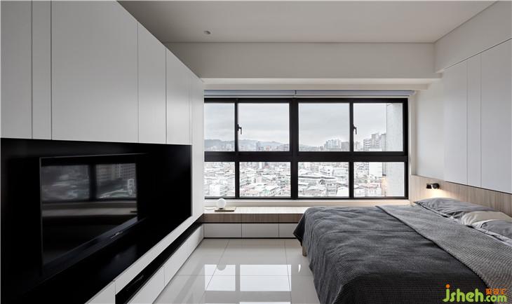 主臥旁邊延續(xù)客廳的臥榻意象,衣柜中間內(nèi)凹噴黑放置電視主臥旁邊延續(xù)客廳的臥榻意象,衣柜中間內(nèi)凹噴黑放置電視