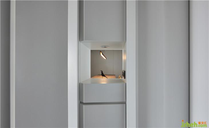 這個門片的概念很有趣,靈感來自于有一次我柜子門沒關(guān)好留了一點縫隙, 陽光照射在上面形成很有趣的光影變化,后來我讓這個概念延伸到玄關(guān)柜上,讓這個柜子表情因為不同視角而有不同變化