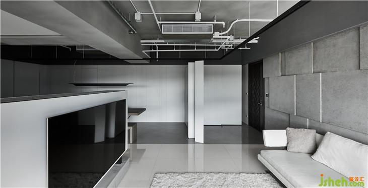 將入口方向改變,主要希望一回到家可以看見的是窗外的風(fēng)景, 而不是冷冰冰的墻壁,設(shè)計手法上利用鐵件的不規(guī)則角度排列延續(xù)到柜體門片上的皺折,是造型也是把手的一部分