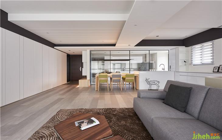 廚房設(shè)計(jì)了四片鐵件拉門(mén)做為開(kāi)放式廚房的區(qū)隔