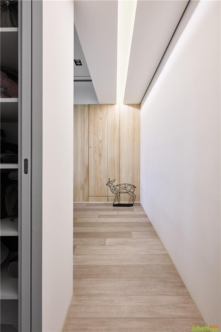 房間入口上方的梁利用燈帶的手法弱化壓迫感