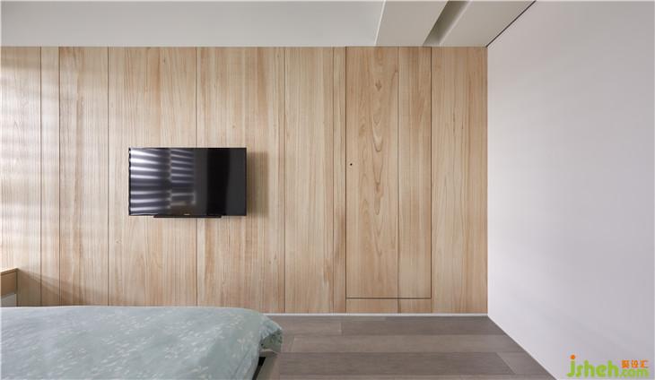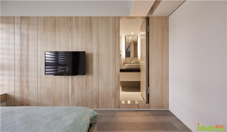主浴牆面也用實(shí)木皮隱藏起來