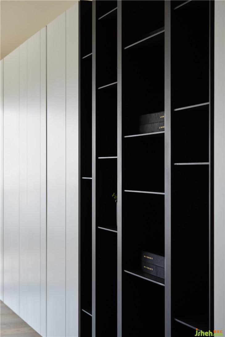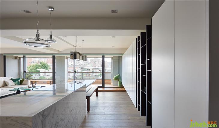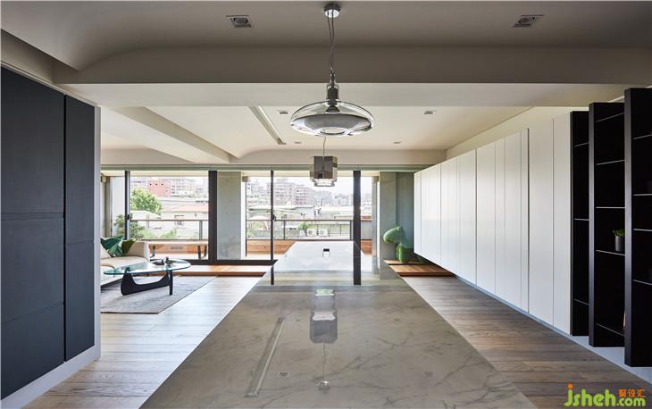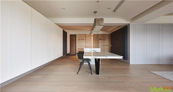 右側為主要收納空間,盡量將收納集中在同一邊,讓空間呈現最大開放性