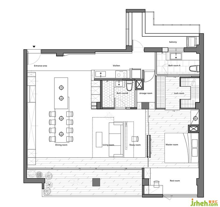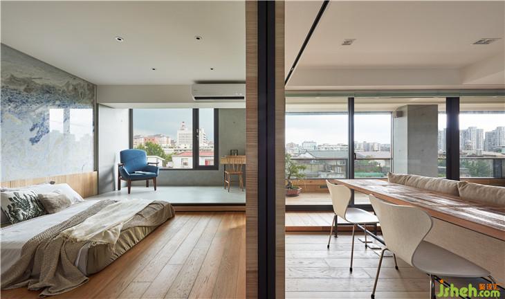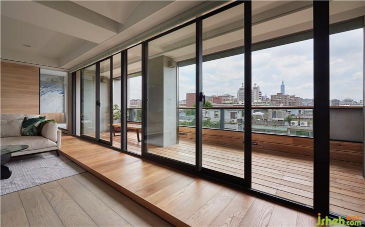 內縮陽臺與架高地版的延伸,一種內外延伸的錯覺