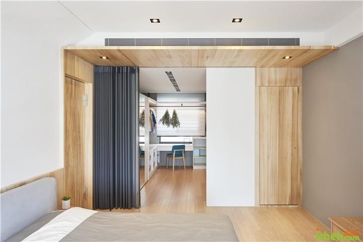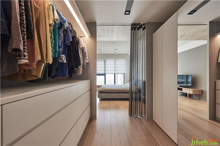 臥室左邊更衣室使用拉簾取代固定門片