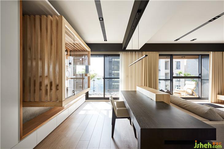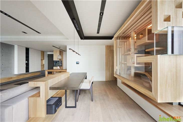 客廳后面為開放式的書房,書桌側(cè)邊刻意拖開的縫也是可以走線的空間