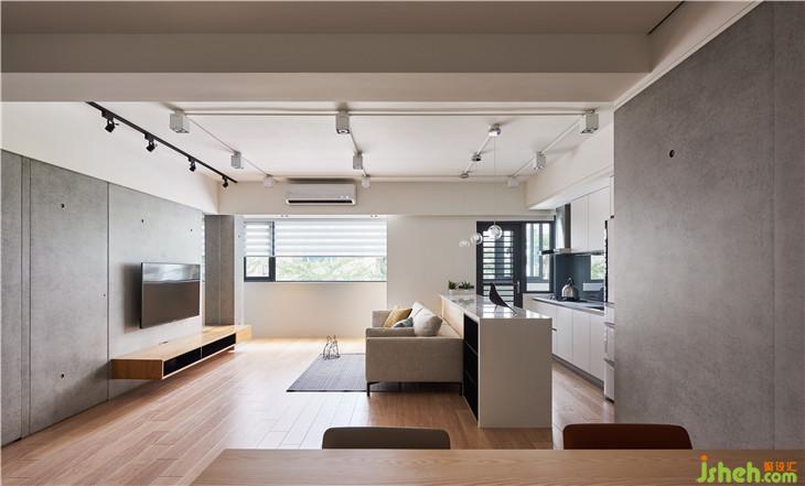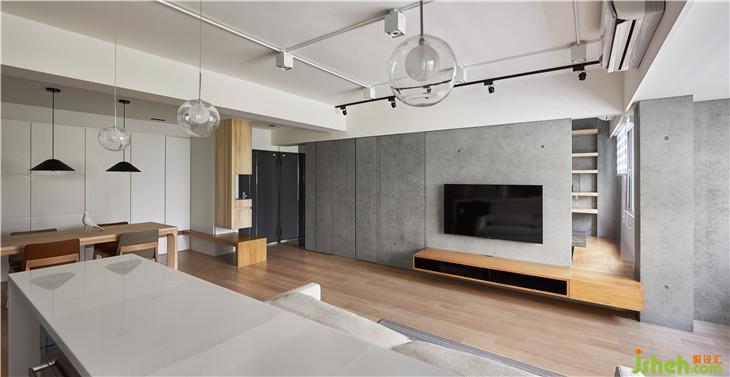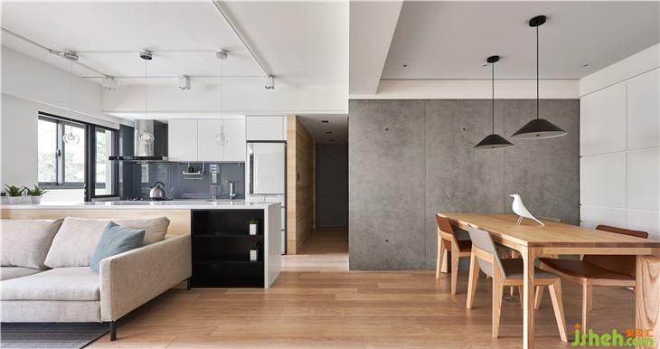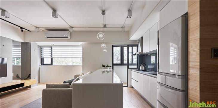 開放式廚房的吧臺區(qū)也變成沙發(fā)背墻