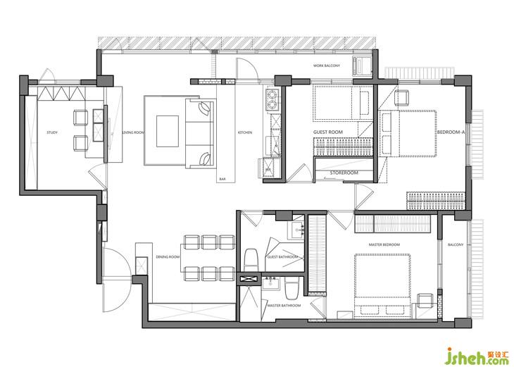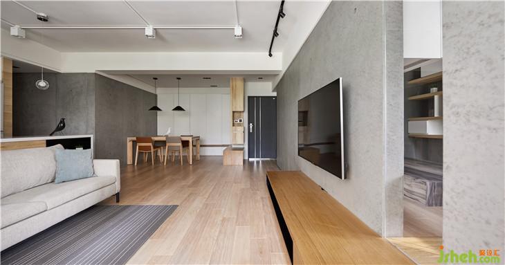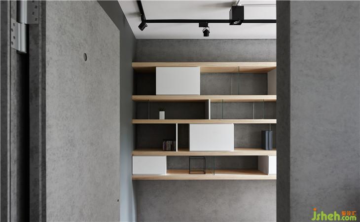 電視墻后方是女主人的工作室兼書房,刻意留了一個(gè)縫隙讓光線及柜體延伸