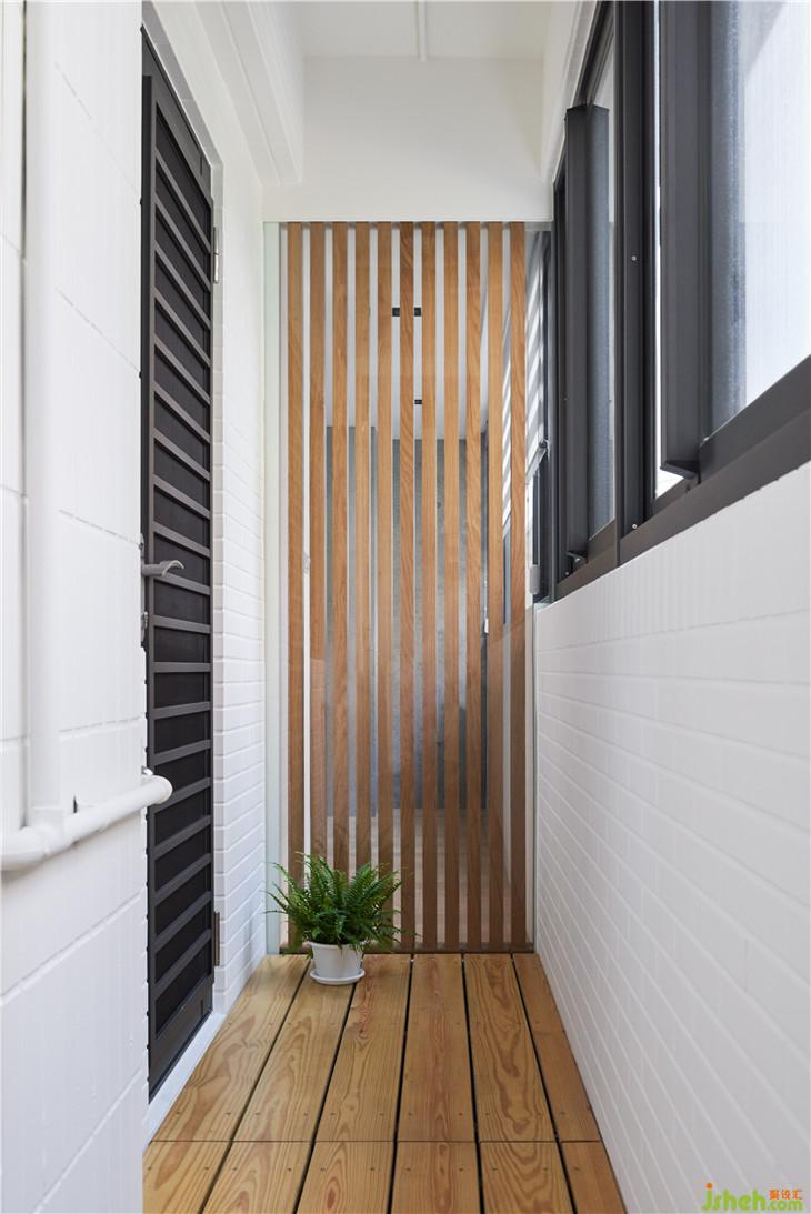 后陽臺(tái)部分利用木角料做格柵,墻面保留原有磁磚刷漆美化