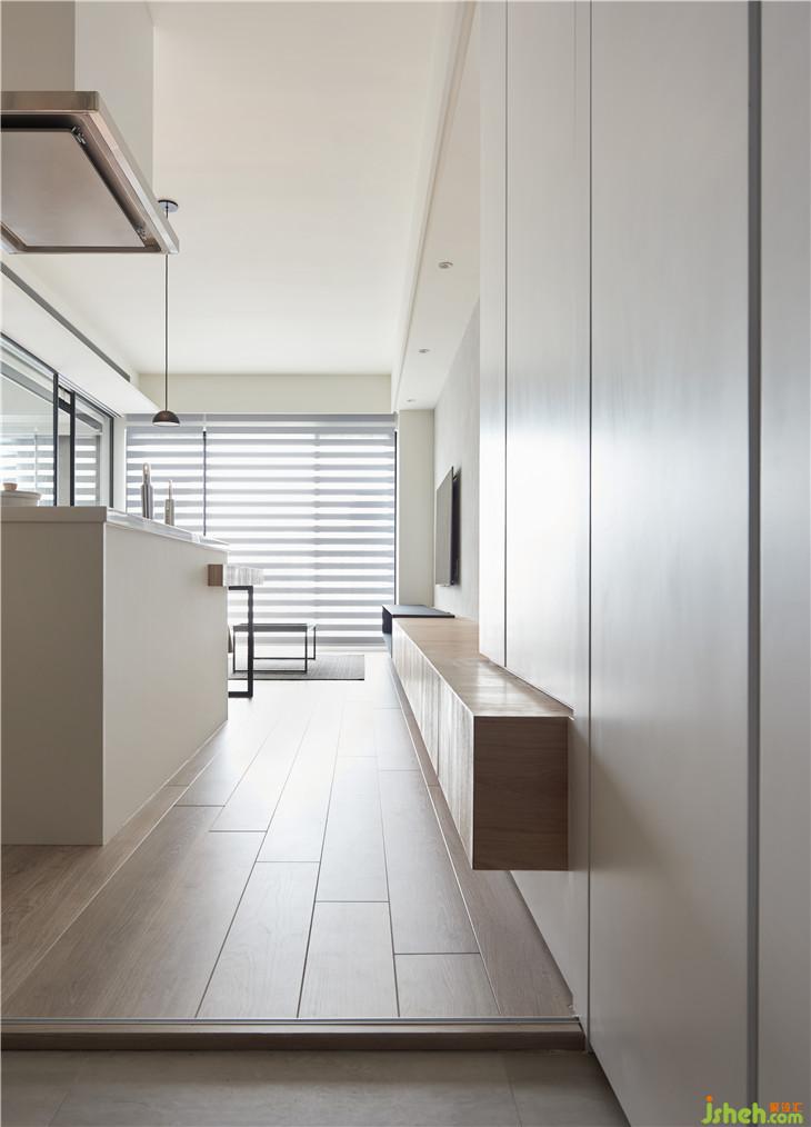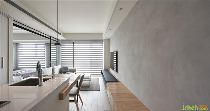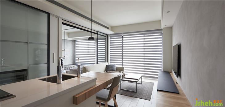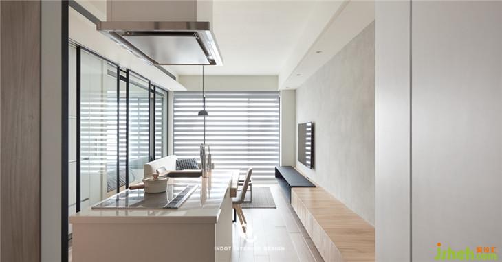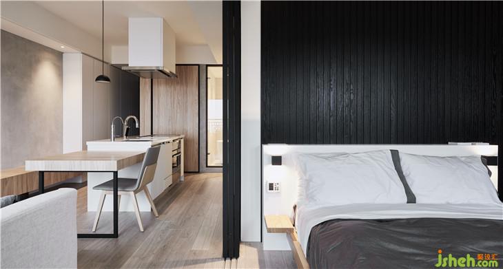 此案屋主喜歡住在飯店的氛圍,希望家里能有飯店的風格,于是我們將廚房位移到外面變成開放式廚房,主臥室使用拉門,跟客廳有穿透感;整個空間塑造一個回字型動線,這樣的回字型空間,除了會讓空間延伸,光線或?qū)α餍Ч紩芎?,也增加一種人與人之間不預期的互動機會。