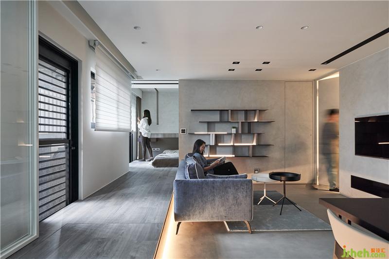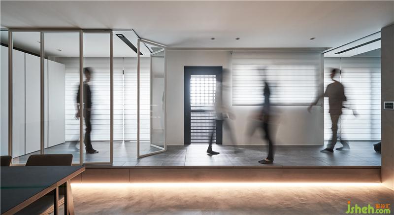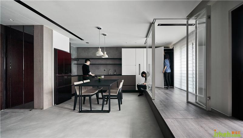 設(shè)計(jì)理念:現(xiàn)況除了坪數(shù)小的缺點(diǎn)之外,也只有單面采光,造成原有格局配置的客餐廳都沒(méi)有窗戶(hù)形成昏暗。我企圖將格局翻轉(zhuǎn),把廚房位移到最內(nèi)側(cè),讓原來(lái)廚房的光線引入客廳,因?yàn)橐粭l架高平臺(tái)的連串,將小孩房與主臥室放在兩側(cè),中間整合為開(kāi)放式客廳與廚房餐廳。室內(nèi)設(shè)計(jì)師