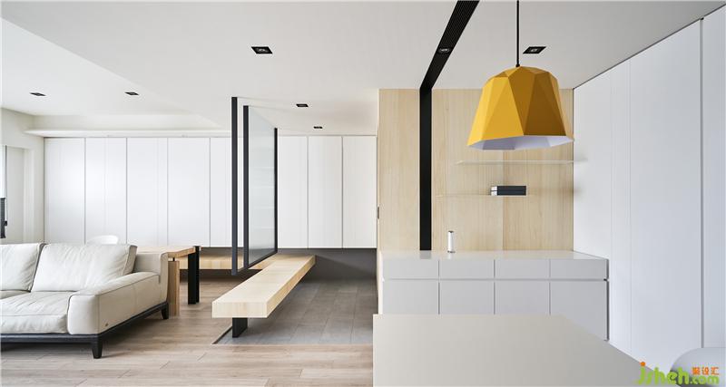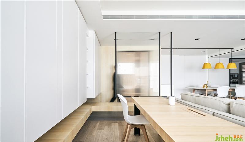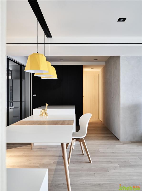 屋主是一位律師,平時工作壓力很大,所以我們決定讓整個空間都是以白色系為主,色彩心理學上,白色象征純潔、干凈、信任,很符合屋主工作的專業(yè)形象,而為了避免太大面積的白色會讓人有開放的疏離感,所以適時地穿插木頭及局部灰、黑色點綴,平衡視覺感受。室內(nèi)設(shè)計師