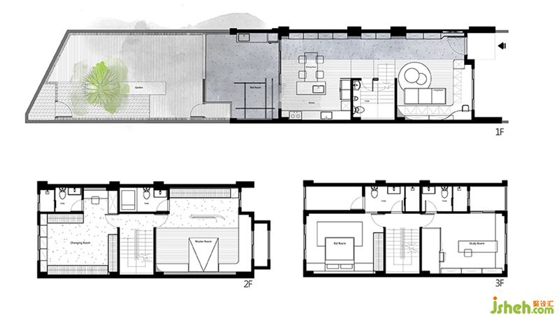 這是一間位于楊梅的三層樓透天住宅,室內(nèi)面積約75坪,還有一個近25坪的超級大庭院;屋主為一對夫妻與一隻狗狗跟兩隻鳥,他們原來住宅臺北市中心,退休后就想找個安靜的地方休息享福,所以就決定賣掉臺北房間搬到這裡。原始房屋是一個標準建商蓋出來的傳統(tǒng)歐式透天,還有我最討厭的丑丑木頭扶手,其他部分除了格局很狹長導(dǎo)致中間光線較差外,其他都不算太差,尤其是挑高蠻高的是最大的優(yōu)點。