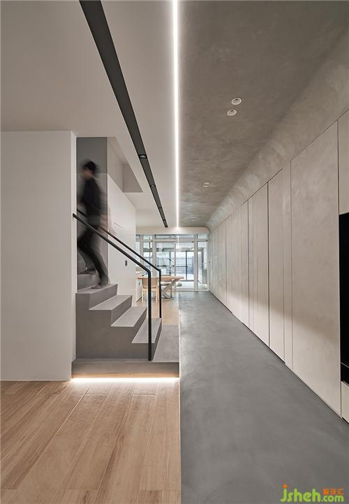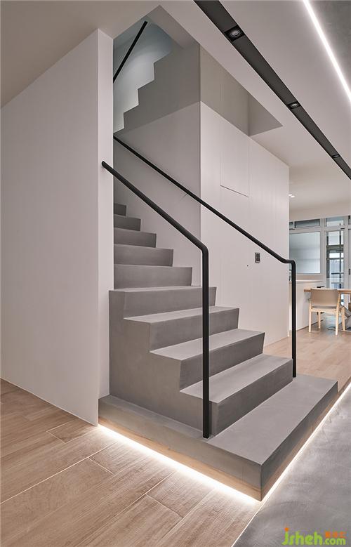 下到一樓,因?yàn)槲覀儗⒕植繝澝娌鸪揖桶炎钕旅鎺纂A踏階重新跟地板整合,希望樓梯不只是樓梯,也是一個休息空間。