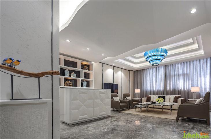 君悅南灣售樓中心的設計過程中,相當注重細部的精美設計,而且以獨特的方式展示功能空間的過渡處理,無論是外部空間還是內部空間,都體現(xiàn)了唯美的創(chuàng)意設計理念。天花造型猶為精致,天花為皮革垂立造型搭配水滴型燈飾設計,宛如倩倩溪流柔美,平靜的水面舒展開層層漣漪,很有張力。延伸至一層連接二層的梯間天花造型,海星的天花造型設計動感而有趣,空間感極強。二樓特別設計了中式和現(xiàn)代的貴賓洽談區(qū),設計高雅但不繁瑣、大氣但不奢華。適合高端消費群體的在售樓中心感受到尊貴的接待體驗。室內設計師
