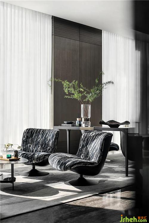 設(shè)計(jì)師以“靜”塑成了空間的尺度,以“動(dòng)”塑造了靈活流暢的空間格局。取消硬性的隔斷,空間以“開”與“合”靈活地連接、分割空間,空間的界線與分割被弱化,通過視覺的延伸塑成空間的通透性。在平衡自然與建筑關(guān)系之余,賦予空間靜止的氣質(zhì),有生命的流動(dòng),有時(shí)間的更迭亦有生態(tài)的情愫,用東方情懷所特有的審美意識(shí)去梳理人與空間的連接。