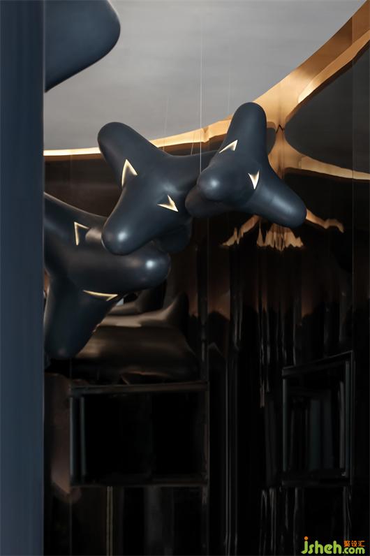 空間洋溢著浪漫唯美的氣息,變幻之中,時(shí)間、空間的感知力變?nèi)?,進(jìn)入了一個(gè)忘我的時(shí)空。充滿未來科技感的材質(zhì),與色彩自成的體塊,共同構(gòu)建了空間的獨(dú)特記憶,既迷幻又有務(wù)實(shí)的將產(chǎn)品進(jìn)行暗線的展示,這一型格另類且不過度夸張,給了空間表達(dá)最大的自由度。