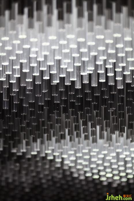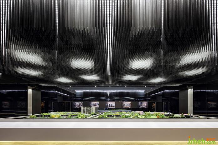 沙盤模型區(qū),SCD將城市特色植入項目之中,芙蓉花-----成都的市花,它來自于我們對城市的熱愛,不僅是想象,這是我們城市的一部分。芙蓉花做為裝置藝術(shù)的主創(chuàng)意,用22000多根水晶棒,黑白灰六種不同漸變色系來完成將熟識元素的再現(xiàn)!