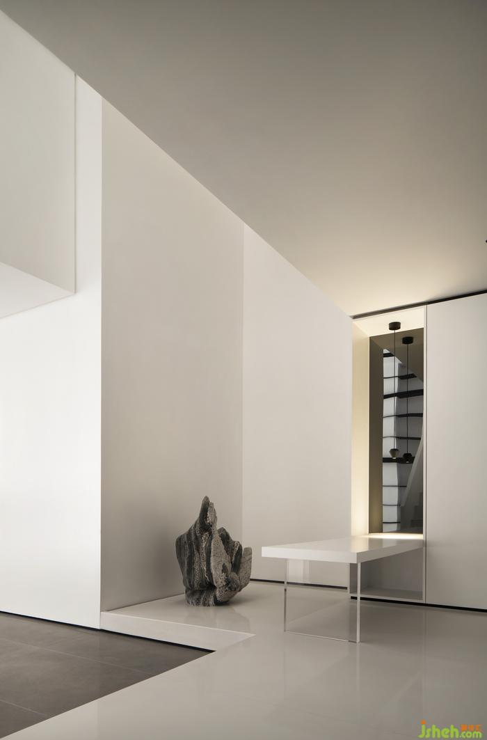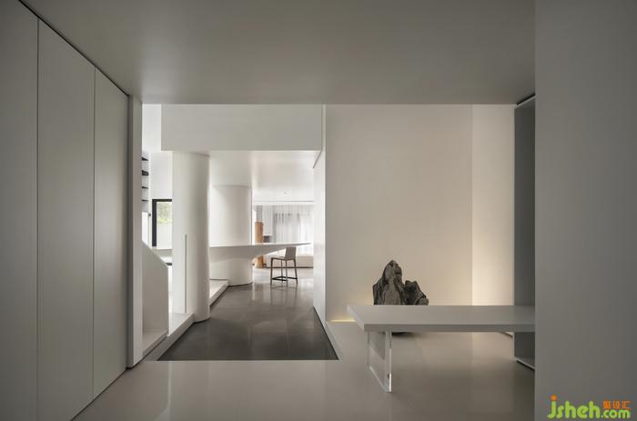 玄關處自然風化的石頭讓“開門見山”的景象回家既視,望向軟膜天花,廣州別墅裝飾整個身心瞬時變得自在從容。全白色的空間骨骼,透過光線折射出非同一般的美學創(chuàng)造。