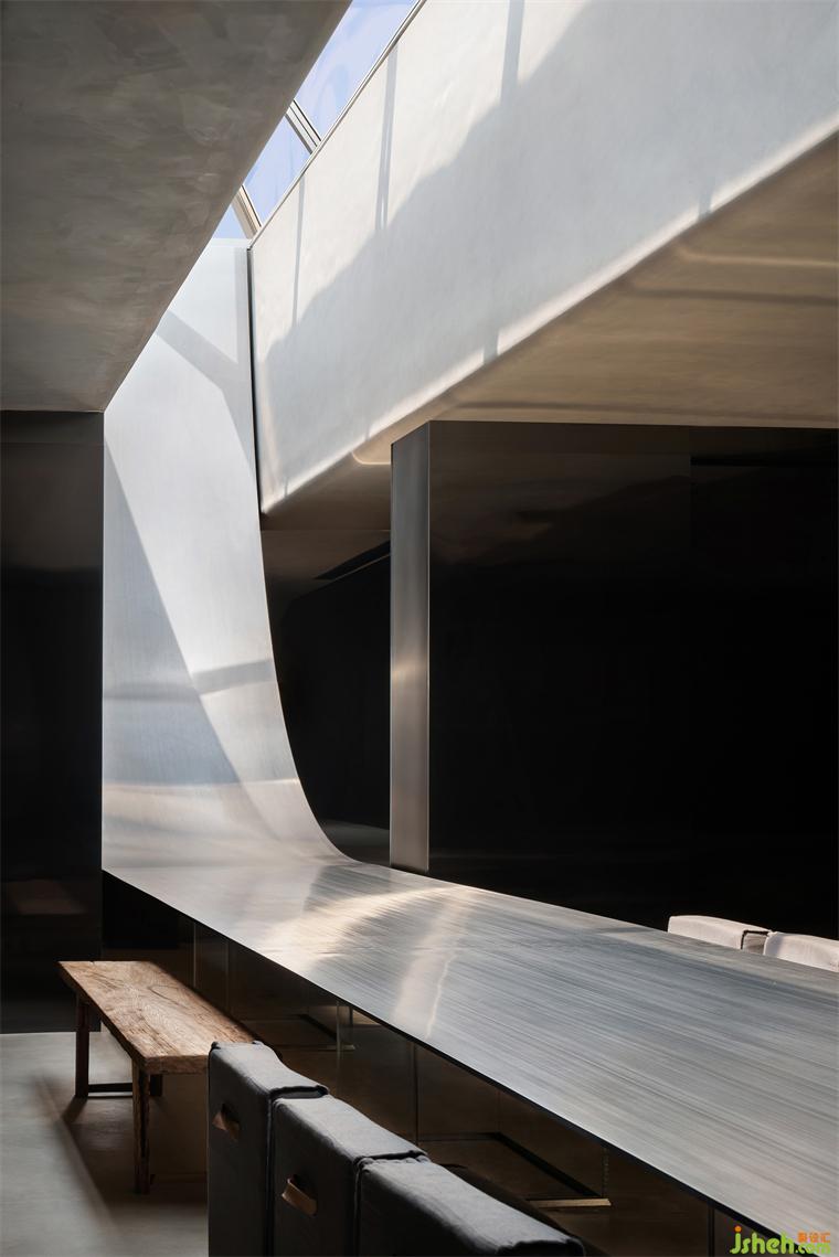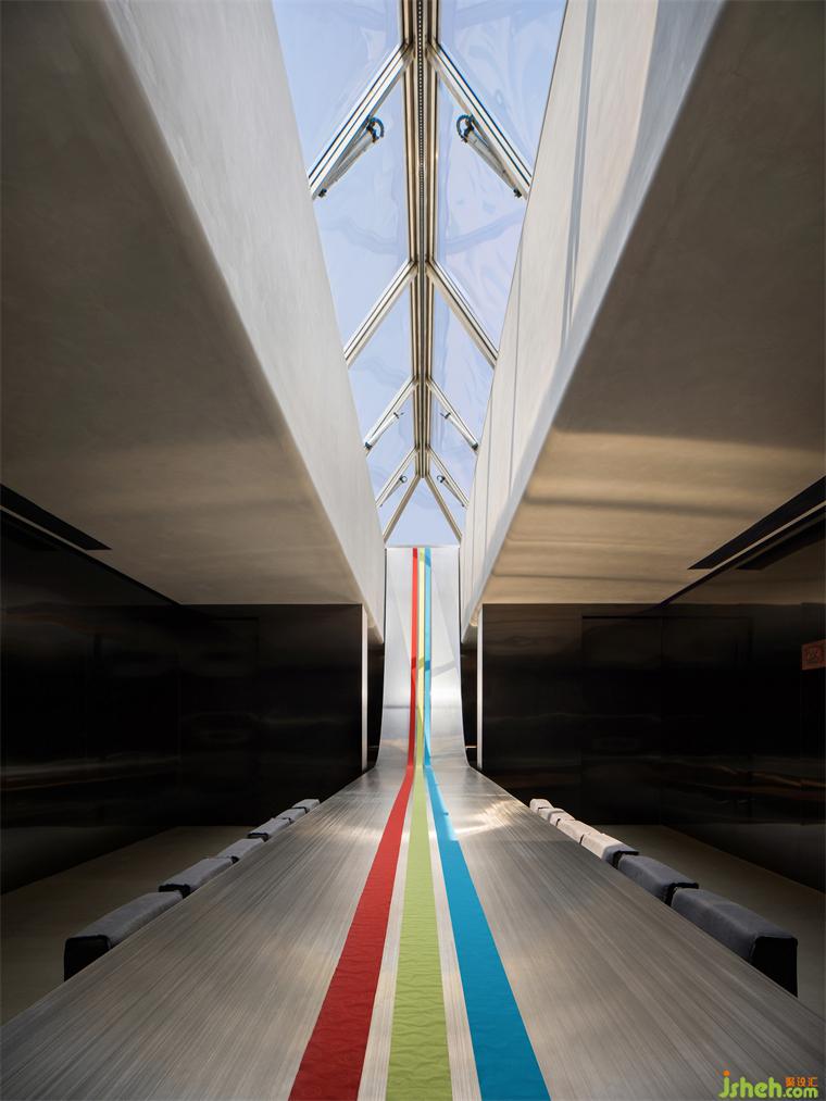 咬定青山,立根巖中。無畏無懼,勇攀高峰。中山展廳設(shè)計企業(yè)向上的路,用果敢鋪就。近15m長,1.2mm厚的灰色不銹鋼板無縫處理從天而降。登頂?shù)恼鞒?,用無畏的心回應。
