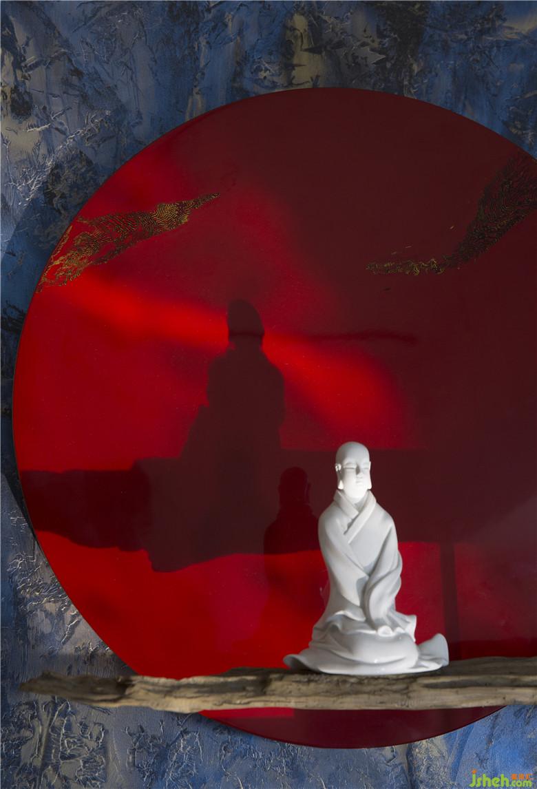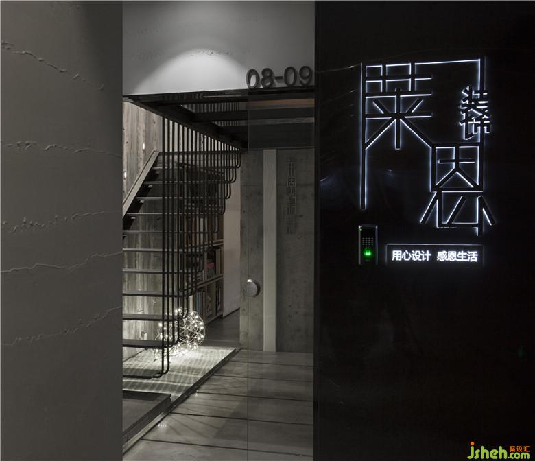入戶門隨機(jī)的白色膩子底像一層層的波浪,同時與入戶玄關(guān)的白色燈帶和景觀沙池形成呼應(yīng),辦公室設(shè)計的黑鈦門框及LOGO背板又和工業(yè)風(fēng)的黑色不銹鋼樓梯、玻璃棧道、以及玄關(guān)的建筑原墻和地面的灰色麻面大理石磚形成一個整體。