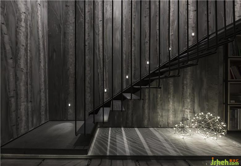 樓梯內(nèi)側(cè)精心繪制的抽象白樺林則讓空間多了一份生活趣味,置身其中猶如身在遼闊平原,可以大口呼吸消除工作的疲憊。