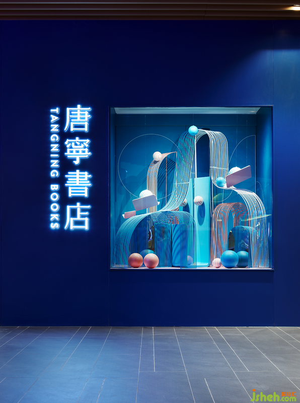 2015年起唐寧書店開始使用由立品團隊設(shè)計的品牌視覺形象系統(tǒng),而在全新店面中,其標(biāo)志藍(lán)色及輔助圖形得以巧妙延展運用,成為空間中的亮點。