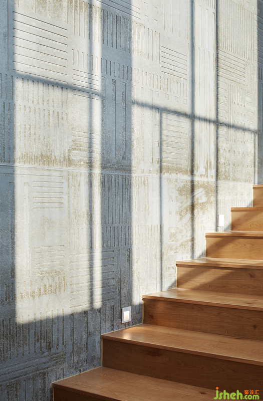 品牌輔助圖形以城市剪影及堆疊書籍作為概念,新店中樓梯墻面的獨特肌理正是來源于此。