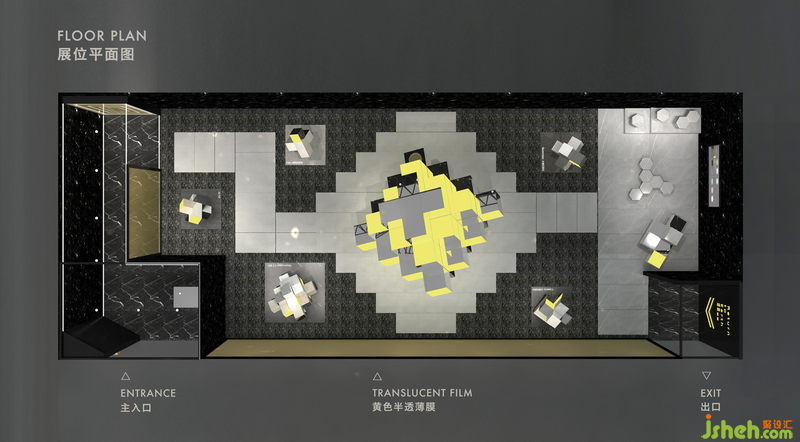展位三面封閉,正立面僅留下入口與出口,大面積由費(fèi)羅娜標(biāo)志黃色的半透薄膜覆蓋,對往來人流起到了恰如其分的“吸睛”與“劇透”作用。