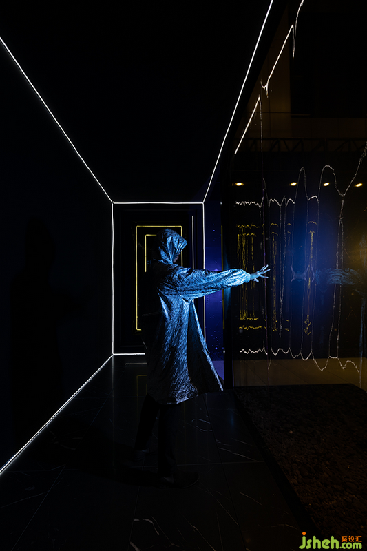 觀者在展位外圍入口處排起隊列,依次摁下登錄按鈕獲取帶有專屬編號的“船票”,隨后即在透著黃色微光的半透明薄膜的引導(dǎo)下,向走道盡頭的展位入口走去。
