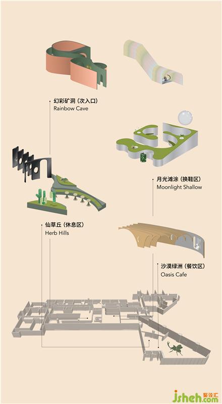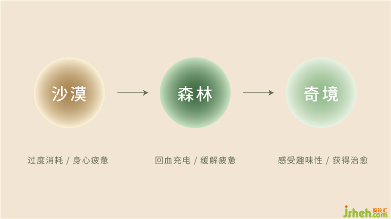 立品團隊與業(yè)主共同為近3000平方的店面重塑了消費者在店內(nèi)的體驗路徑,將空間劃分為三大區(qū)域,講述一個人們從沙漠到綠洲、找尋并最終到達奇境,通過足浴和SPA獲得治愈的故事。裝修公司