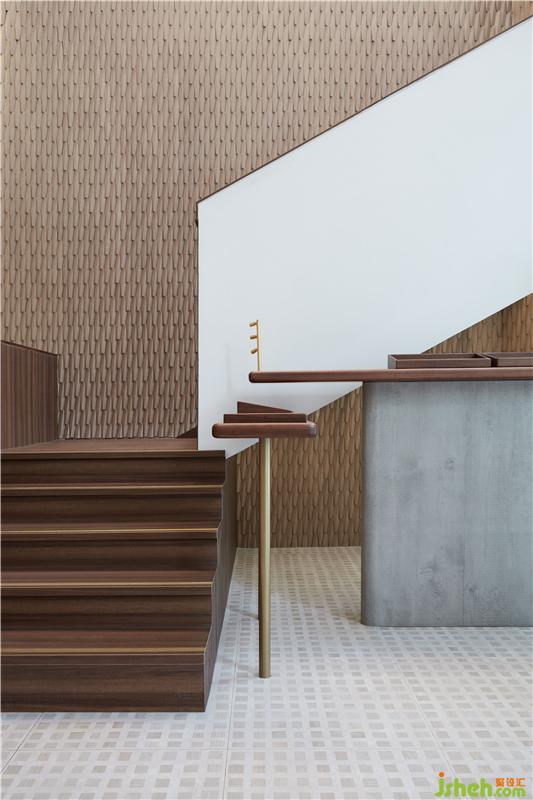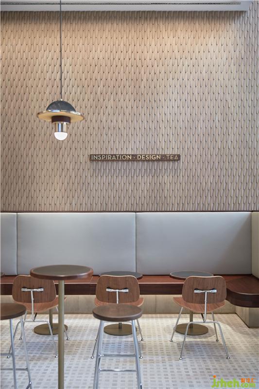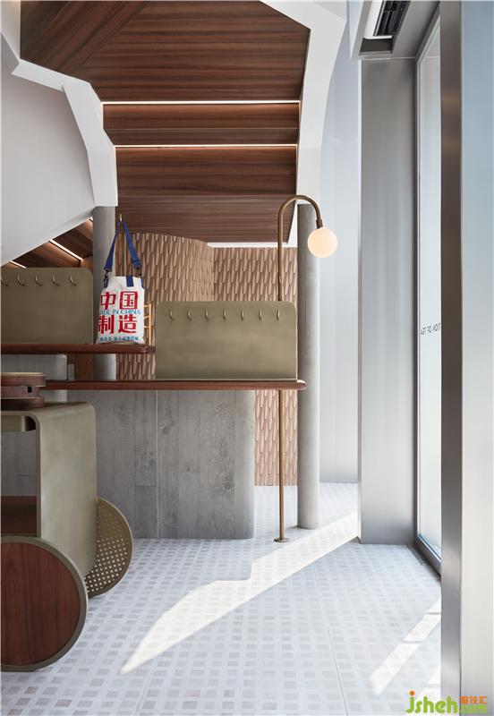 周邊販賣(mài)區(qū)域在臨街入口處,貼合樓梯底結(jié)構(gòu),利用貨架及中島形成了更具銷(xiāo)售氛圍的半圍合小空間。在「茶樓」主題之下,設(shè)計(jì)師對(duì)傳統(tǒng)茶樓中的點(diǎn)心手推車(chē)和蒸籠這些具有代表性的元素進(jìn)行再設(shè)計(jì),構(gòu)建會(huì)講故事的場(chǎng)景。