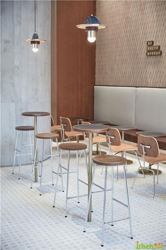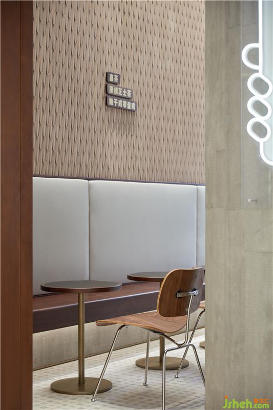 店內(nèi)選用上世紀(jì)80、90年代的家具款式,金屬腳、木紋貼皮、人造革靠背,典型的南洋風(fēng)格特征是嶺南人獨(dú)有的童年記憶。而地面鋪設(shè)的改良花磚和墻面的定制手工磚,則是當(dāng)代設(shè)計(jì)對(duì)傳統(tǒng)材料工藝的復(fù)刻,讓精致與質(zhì)樸可以兼得。