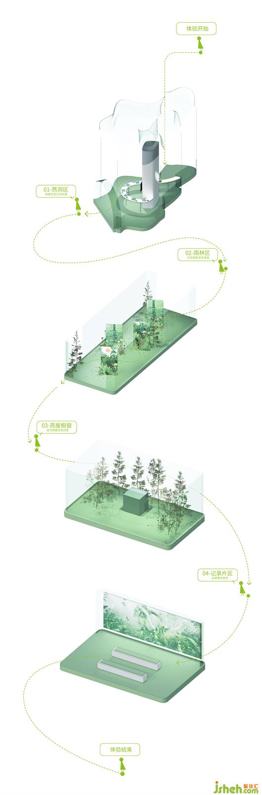 人的探索欲需要被不斷激發(fā)。立品在二層空間置入文化再現(xiàn)的場(chǎng)景表達(dá),還原金絲燕生活的燕洞、熱帶雨林及現(xiàn)代燕屋虛擬場(chǎng)景。