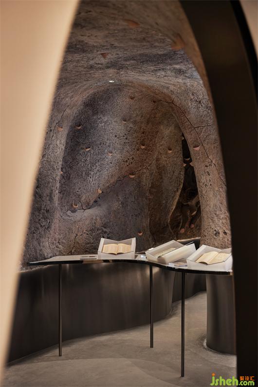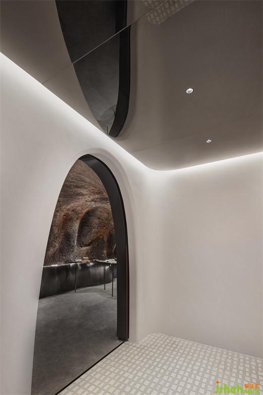 在表達(dá)手法上,如何平衡具象和抽象之間的關(guān)系?燕洞位于整個(gè)體驗(yàn)動(dòng)線的入口處,以粗礪的巖洞結(jié)合金屬材質(zhì),同時(shí)實(shí)現(xiàn)原始力量感和現(xiàn)代感。