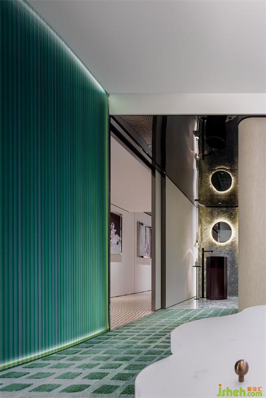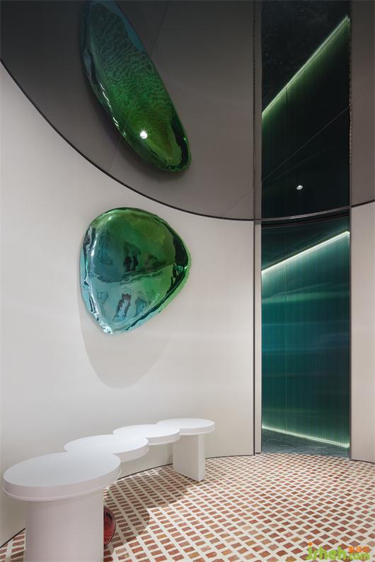 三層空間承載燕窩品鑒和聚會(huì)功能,在白里透紅的底色上引入亮眼的墨綠,帶來(lái)不一樣的空間印記。