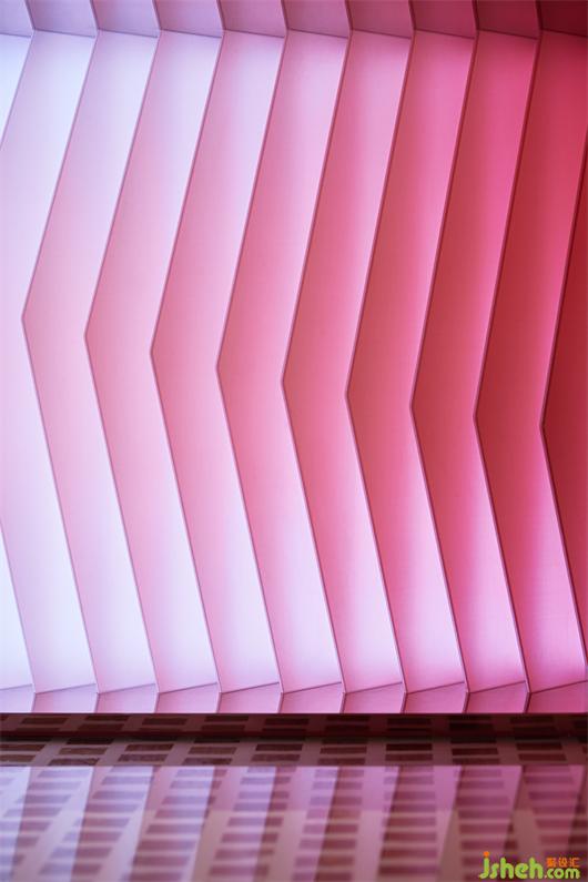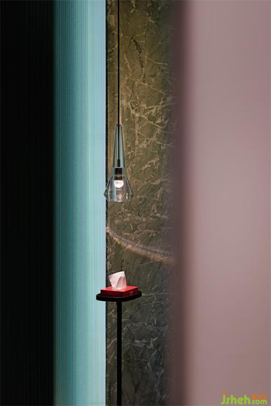 隨空間動(dòng)線(xiàn)轉(zhuǎn)換,設(shè)計(jì)師用不同的材質(zhì)和肌理進(jìn)行細(xì)節(jié)強(qiáng)調(diào),通過(guò)折線(xiàn)的鋪排、幾何線(xiàn)條的特定組合,延續(xù)著空間的張力。