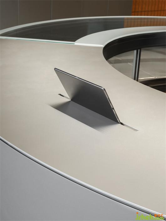 入口處充滿(mǎn)未來(lái)金屬感的點(diǎn)單臺(tái)被設(shè)置在中心位置,原本較為局促的單元被放大后,喜茶設(shè)計(jì)以曲線(xiàn)環(huán)形的構(gòu)件成為“歡迎”顧客的友好界面,并且和取餐區(qū)獨(dú)立設(shè)置,優(yōu)化了體驗(yàn)純粹感。