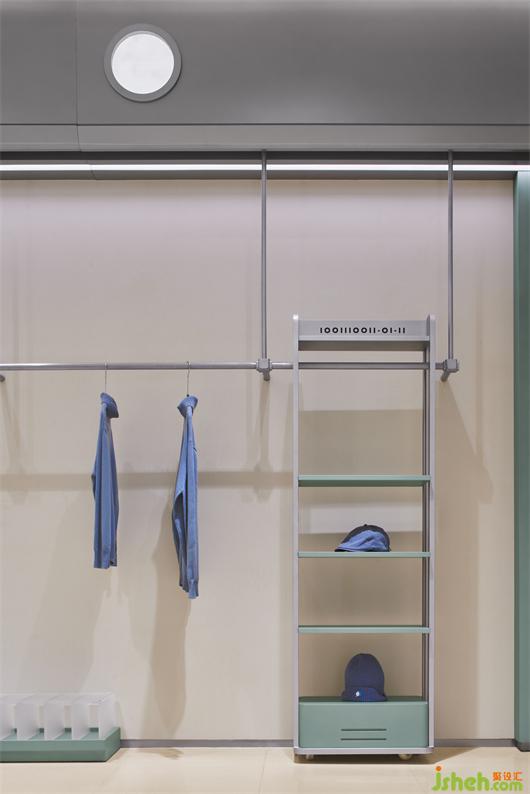 故事中飛船著陸在地球上一片人跡罕至的荒漠,立品設(shè)想整個(gè)一樓為飛船外部環(huán)境,貨架元素的設(shè)計(jì)圍繞地表生態(tài)勘察、物資采集和運(yùn)輸主題開(kāi)展。地面模擬外部環(huán)境的砂礫質(zhì)感,整體色調(diào)柔和了科幻情節(jié)的固有冰冷感。