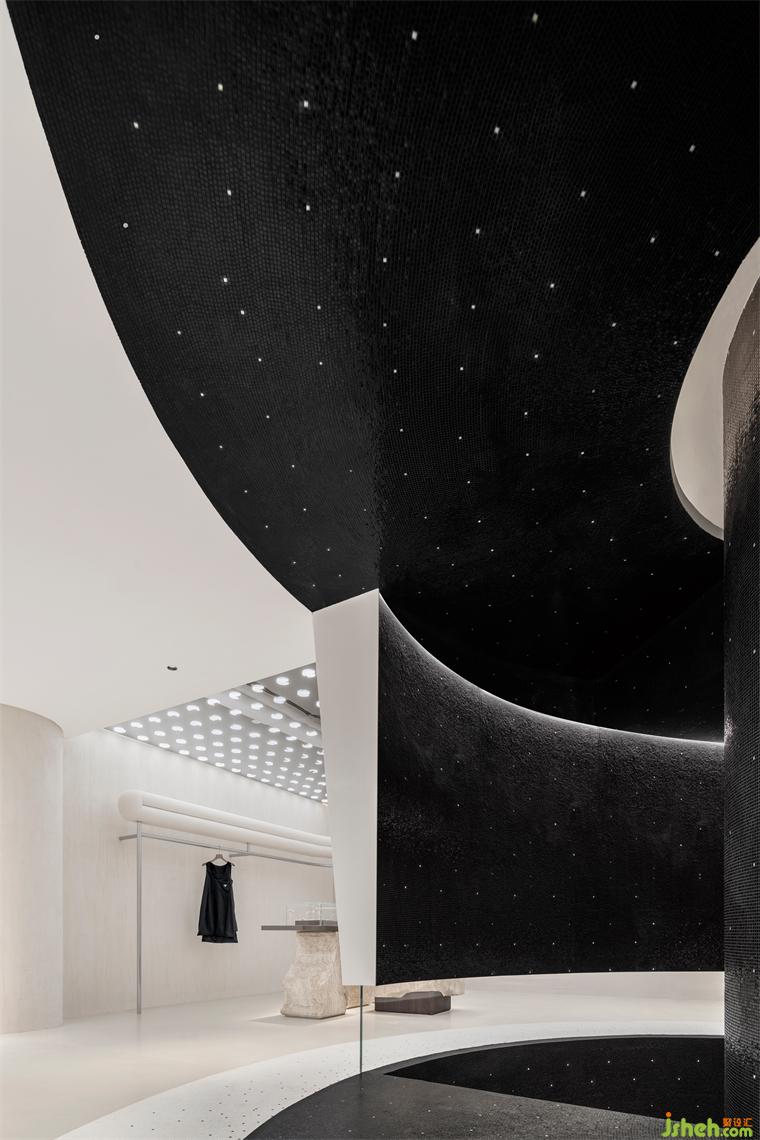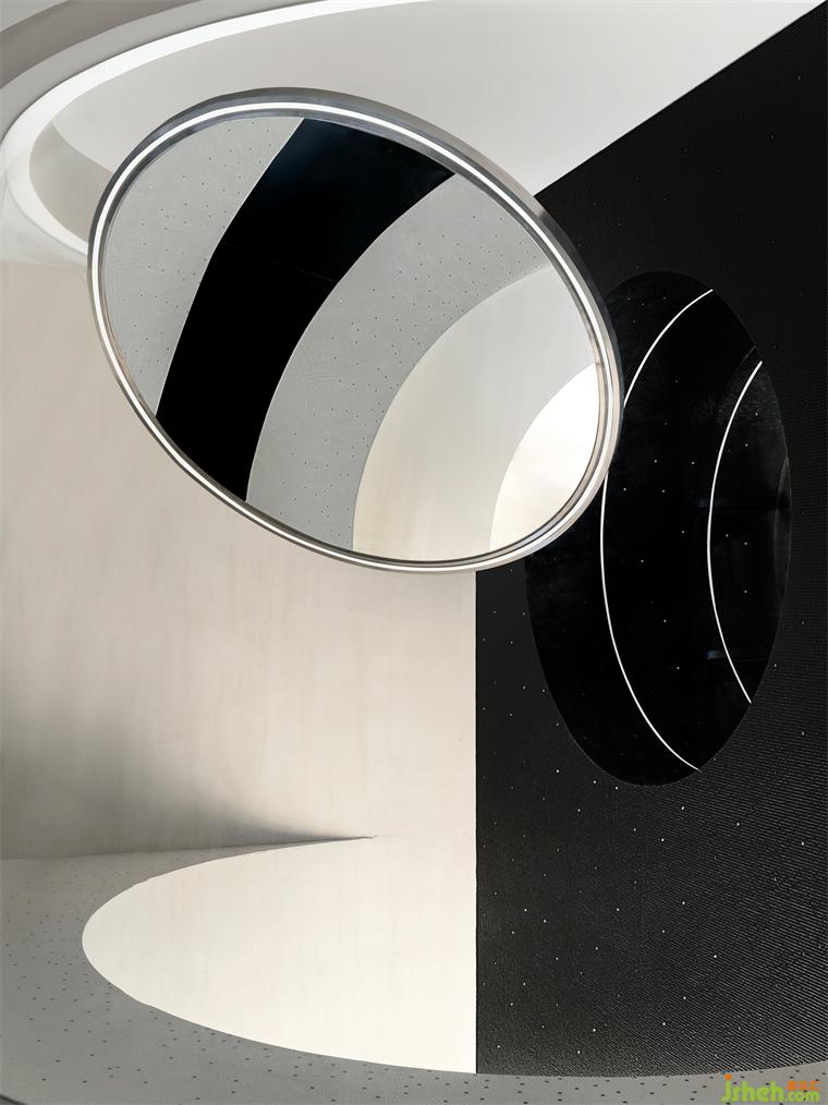 月的裝置在這里清晰可見,立品利用玻璃將吊掛的裝置和挑空空間進(jìn)行圍合,裝修設(shè)計(jì)形成獨(dú)特的場所記憶。