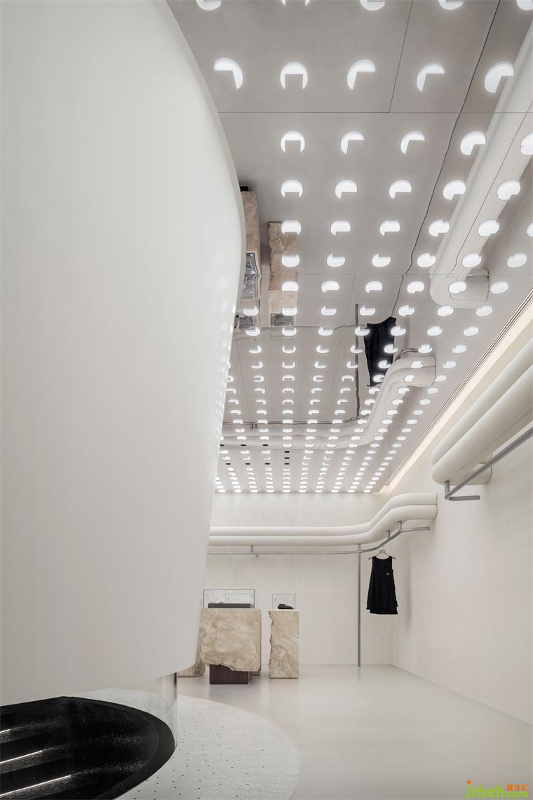 除了觀念上的意象,設(shè)計(jì)語(yǔ)言也基于時(shí)間線將月的動(dòng)態(tài)變化進(jìn)行轉(zhuǎn)譯和表達(dá),裝修設(shè)計(jì)形成空間中排列布局的天花月相燈,實(shí)現(xiàn)功能和概念的巧妙結(jié)合。