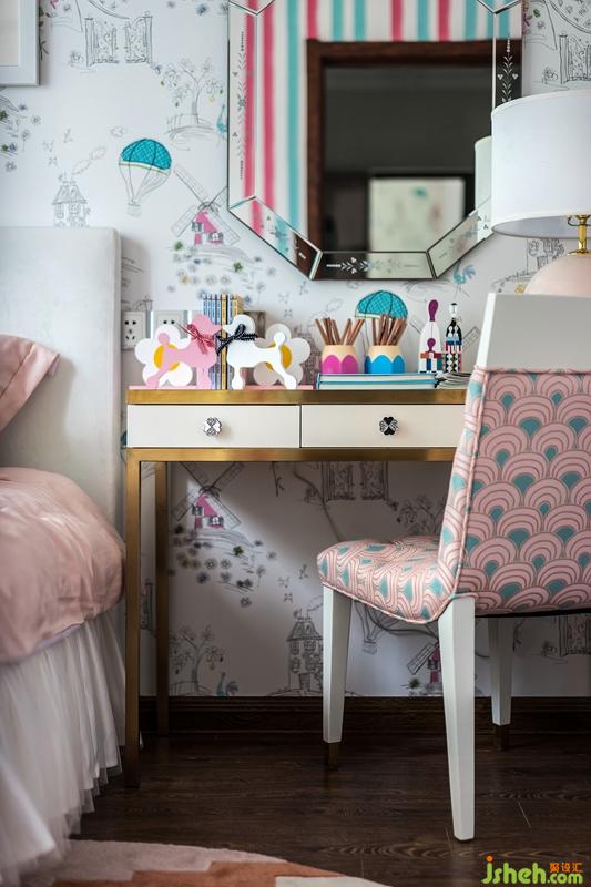 女孩房卻大膽使用粉色,一副小女生左派,好似有點(diǎn)突兀。其實(shí)色調(diào)搭配小小契合了美式風(fēng)格。整個(gè)個(gè)臥室粉色泡泡般地女孩之夢(mèng),適合做女孩房。