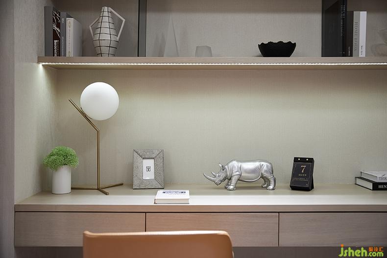 設(shè)計(jì)方案上,設(shè)計(jì)師以過(guò)道為分隔線將空間呈左右兩邊分布;多功能房作為過(guò)渡區(qū)域,演繹整體戶(hù)型空間的書(shū)房角色,引入自然光線,既保證使用過(guò)程中的視線明朗,也提供了個(gè)人休憩的放空區(qū)域。