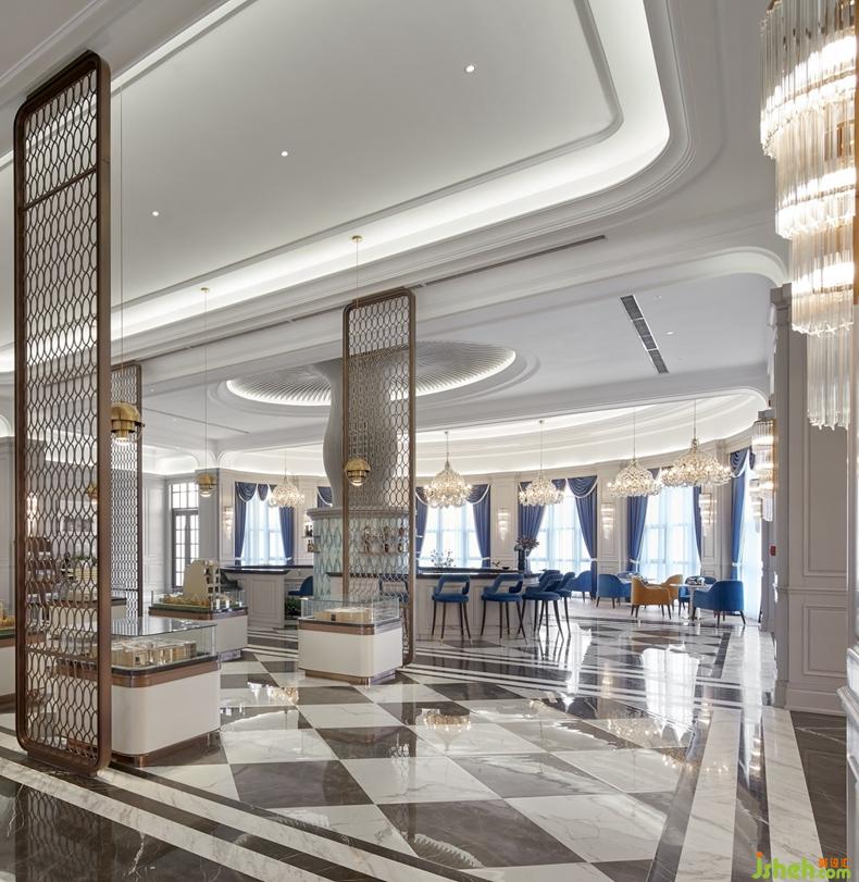 水吧區(qū)域以許昌歷史文化遺產(chǎn)——[鈞瓷]演化而成的“花樹(shù)”造型立足空間主中心,以簡(jiǎn)單的造型元素提升空間高級(jí)感,用精巧的設(shè)計(jì)手法將宏大的敘事載入空間,以現(xiàn)代為基調(diào),置入法式家具及配飾元素,鮮明的色彩層次及質(zhì)感的材料運(yùn)用,詮釋出浪漫主義的精髓,以此呈現(xiàn)純粹高貴的空間之美。